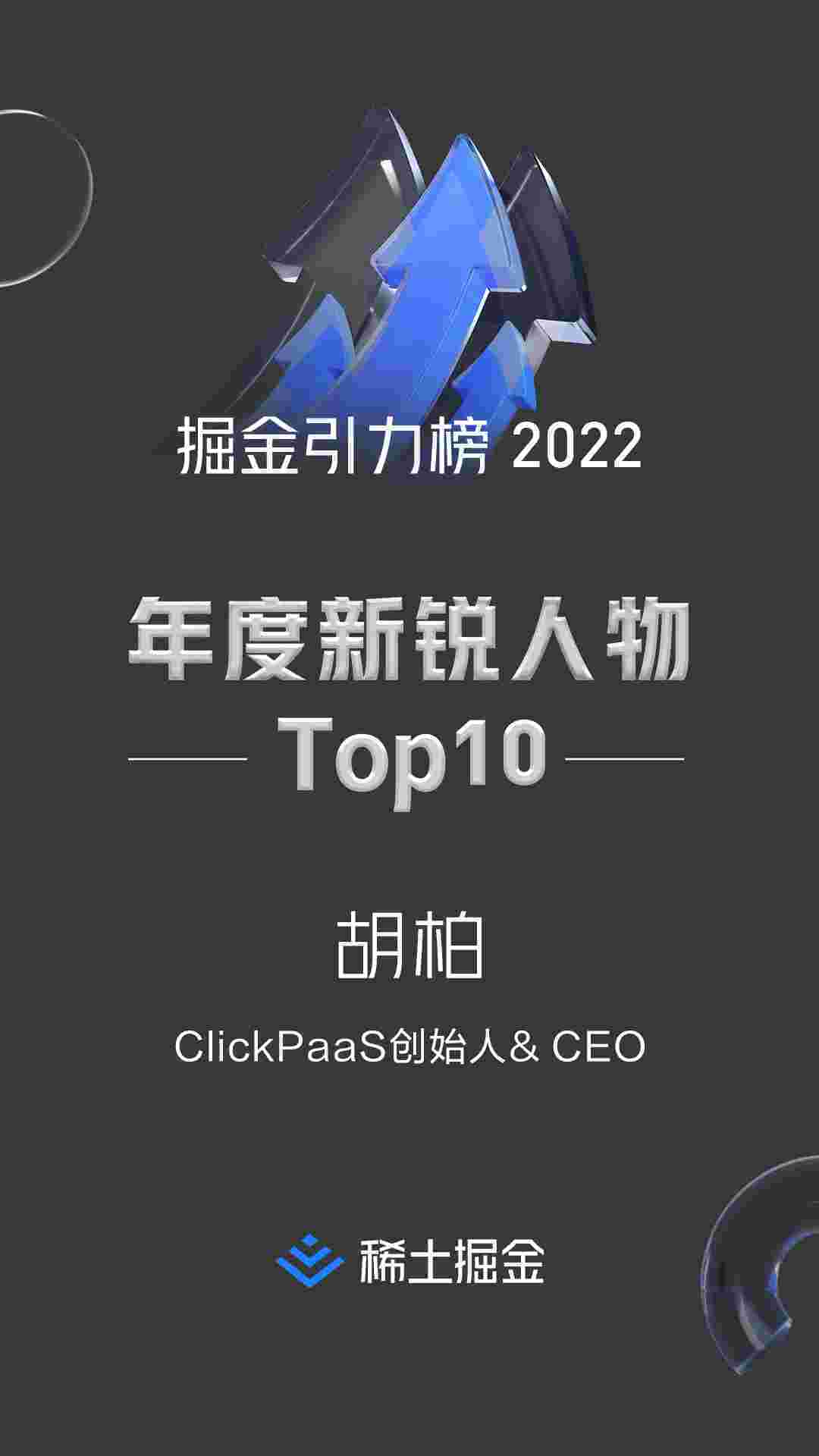 胡柏此次能够入选“稀土掘金引力榜 年度新锐人物TOP 10”榜单,,,,,,,,,,,,,充分说明了业界对胡总个人影响力及小微钱包技术和产品实力的认可。。。。。。。。。